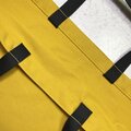 帆布ははコットンなのでお洗濯は可能ですが、ワッペンの関係上、ネット使用の上、弱流洗いにてお願いします。乾燥後のバッグ本体のヨレが気になる場合は、当て布で中温アイロンをお使いくださいませ。