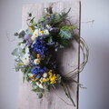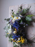 雲竜柳、ユーカリ(5種)、ヒバ、スターチス(3種)、アネモネ、ミモザ、HBスターチス、カスミソウ、ブルーファンタジア、花かんざし、ラグラス、ヤマシダ、雪柳、ティーツリー