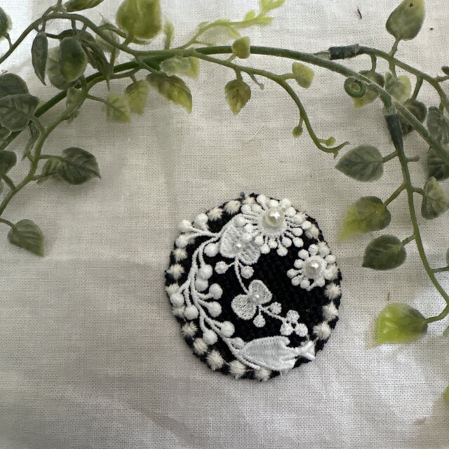ミナペルホネンの刺繍生地でお作りしたハンドメイドのブローチです