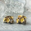 イエローフラワーの立体感のあるクラスターデザインイヤリング。