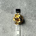 柔らかいゴールドトーンをベースに、イエローのエナメルペイント、シトロンカボション、アンバーラインストーンが中央で煌めくデザイン。