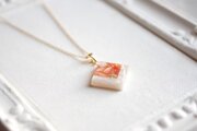 レジンアート スクエアペンダント〈囁き貝・コーラル〉