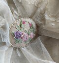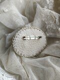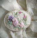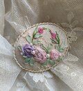 ナチュラルリネンにアンティークチュールレースをのせて、リボン刺繍とビーズを施したブローチです。