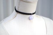 【受注製作】レジンアート ラウンドモチーフとタティングレースとベルベットリボンのチョーカー〈紫雲②〉20㎜