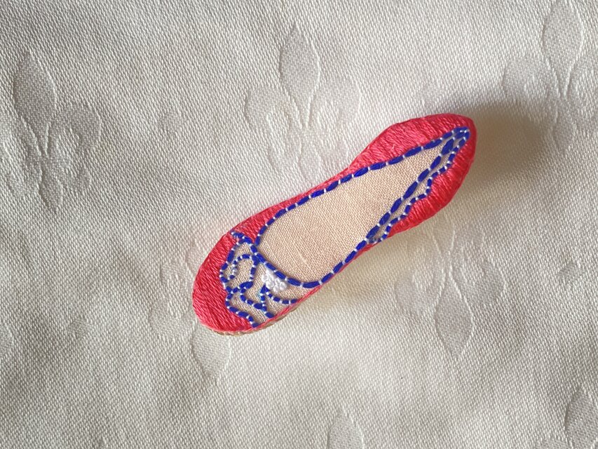 靴のモチーフを刺繍したブローチです。
