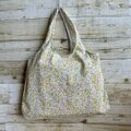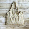 大人かわいい小花柄大きめバッグ(イエロー) 撥水加工ポリエステルコットン 軽量 持ち運び可能 エコバッグ サブバッグ 春 ギフト