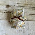 大人可愛くてふんわり優しい小花柄(生成にイエロー、オレンジ、ピンクのお花、水色の実)にほっこり癒されます。