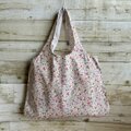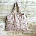 大人かわいい小花柄大きめバッグ(ピンク) 撥水加工ポリエステルコットン 軽量 持ち運び可能 エコバッグ サブバッグ 春 ギフト