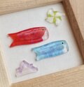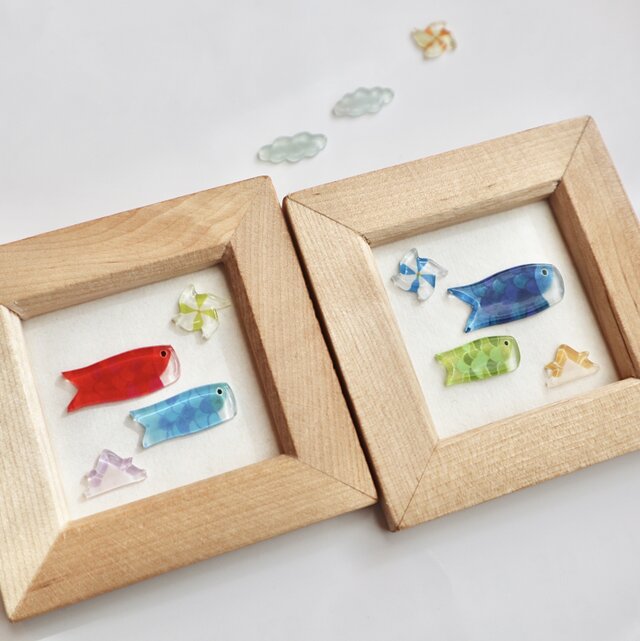 手のひらサイズの小さな鯉のぼりの額飾りです。(プラバンを使いデザインしています。)