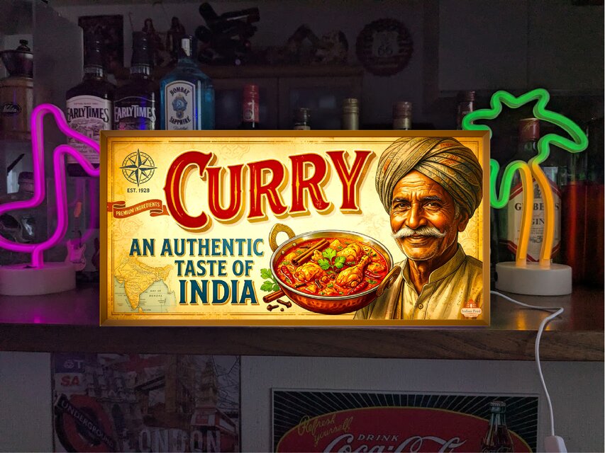 【オーダー無料】カレー 本場 スパイス香辛料 インド料理人 レストラン レトロ 店舗 自宅 照明 看板 置物 雑貨 ライトBOX