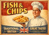 【額付※オーダー無料】 フィッシュアンドチップス 魚 ポテトフライ ビンテージアート アート インテリア A4アートポスター