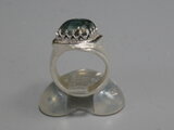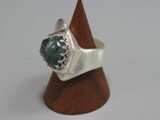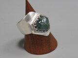 リングのサイズは13号弱、重さは13g、最大幅は22mm、手のひら側の幅は7mm、金属部分は純銀です。