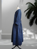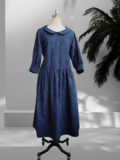フラットカラー七分袖 刺繍生地ワンピース(紺)