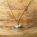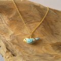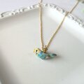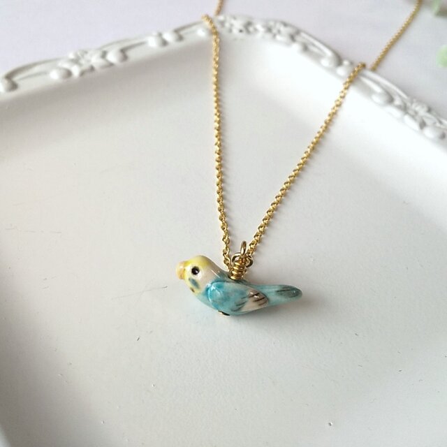 陶器で1羽ずつ手づくりしたセキセイインコのネックレス。
