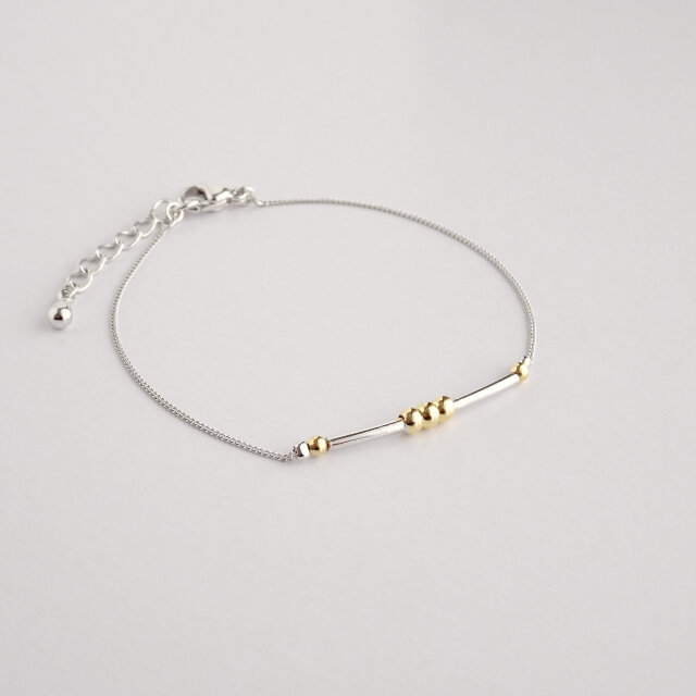 ゴールドカラーのポイント付メタルチューブを使ったブレスレットです。