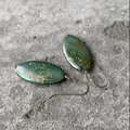 美しいグリーンのシェルにゴールドのペイントが映えるUSAヴィンテージピアス。動くたびにキラキラと輝きお顔まわりを華やかに彩ってくれます。