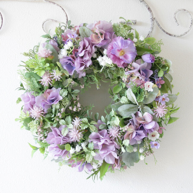 フラワーリース パープルリース ラベンダーカラー ナチュラルリース