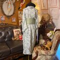 【 単衣着物リメイク ロングワンピース/ドレス/洗える化繊 帯サッシュベルト 青磁のもみじ × グリッド KW-1325】