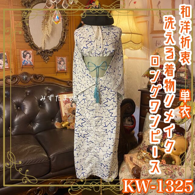 ①古着リメイク: 単衣着物 リメイク ワンピース