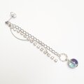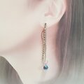 幻想的な輝きを放つアクアオーラにきらめくラインストーンのチェーンを合わせたロングピアスです。