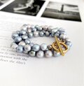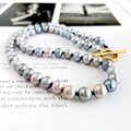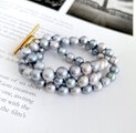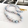 サックス&ライトシルバー ミックス バロックパールのチョーカー 6x6.5mm 2点のみ