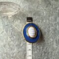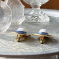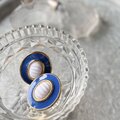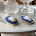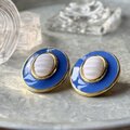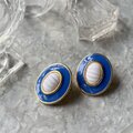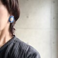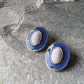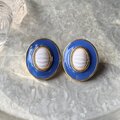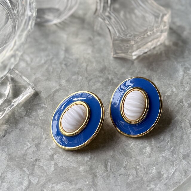 リブになった立体感溢れるオーバル型ホワイトルーサイトに、ロイヤルブルーエナメルペイントされたオーバルイヤリング。