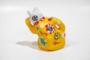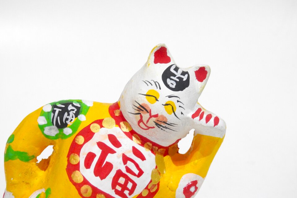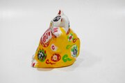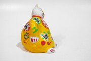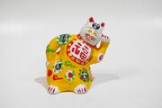 粘土を700度ぐらいで焼いた後色々な色で右手を腰に当てて 福が来ますように彩色しています。 サイズ約8cmx9cmx高さ9,5cm
