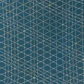 深い緑みの青地に、極細のラインで構成された幾何学模様と、情報の断片のように配された三角形が美しいワンピース。 ブラウン系のサッシュベルトが、深い青の系に温かな残像を遺します。