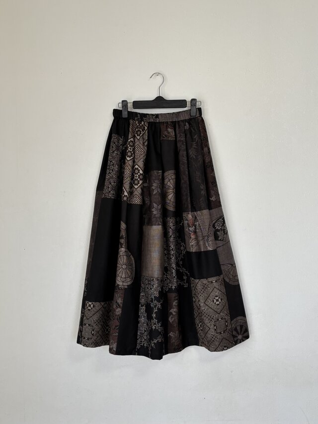 アンティーク着物、泥大島紬のパッチスカートです。