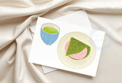 記入例)(101)桜餅と緑茶 x 2枚 (3)アジサイx1枚