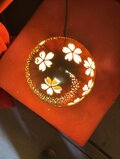 やわらかな光の中に、舞い散る桜を閉じ込めたひょうたんランプです。