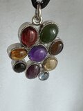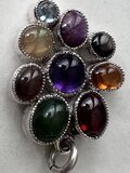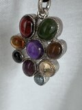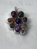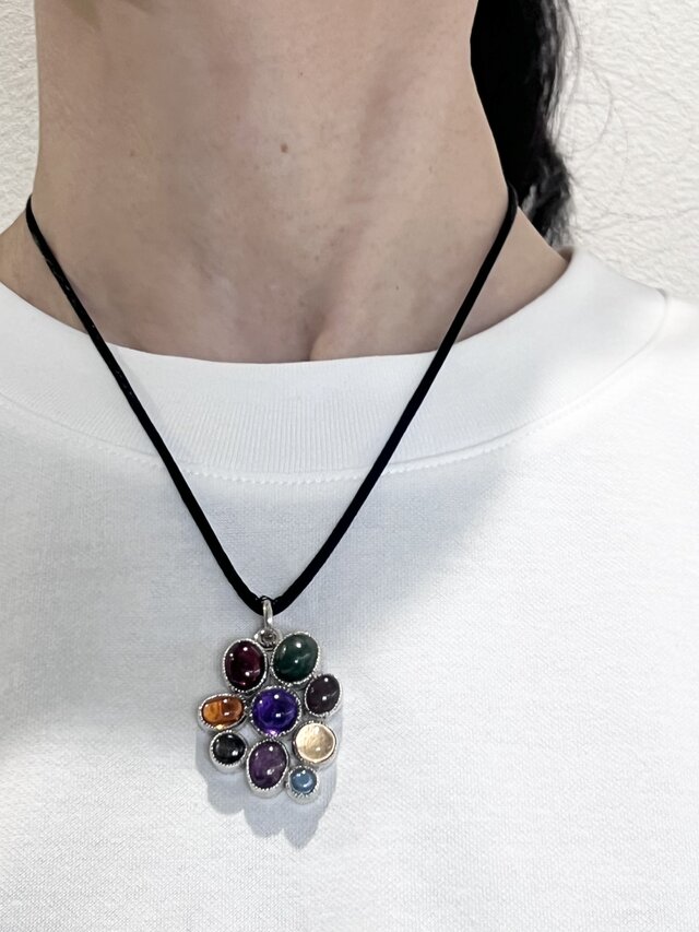 色とりどりの天然石を、花のように集積させた一点物のペンダントトップです。