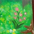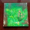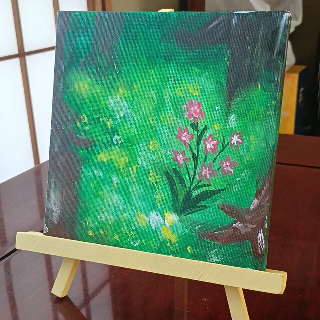 サイズは150×150×10mmのキャンバスでアクリル絵の具画です