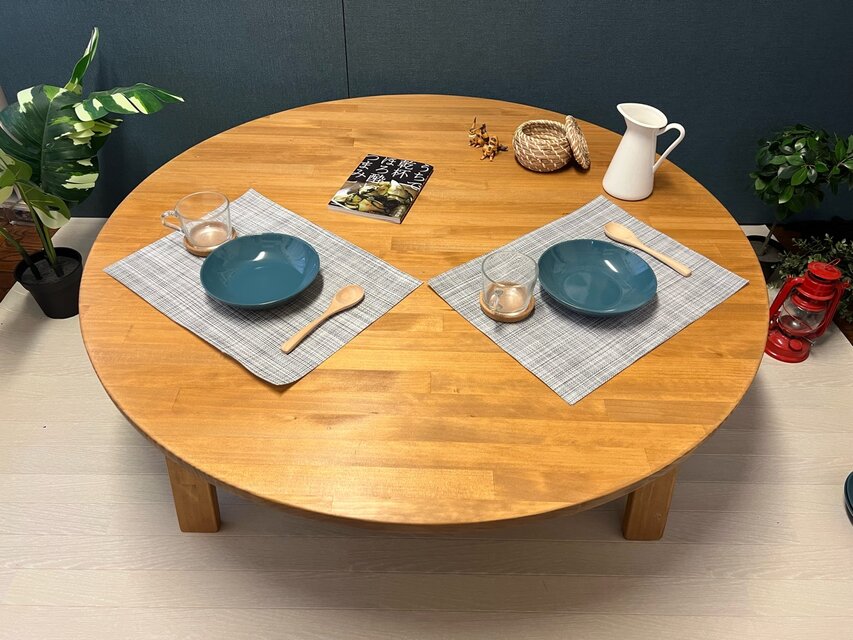 ◎上品な木目が特徴の、パイン材を天板に使用した丸型ローテーブルです。(真円では御座いません!)