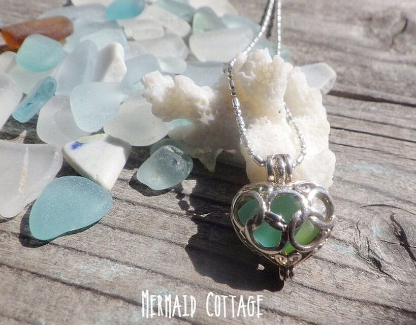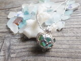 Beach glass in heart diffuser Necklace アロマネックレス