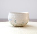 ころんと丸いお湯呑みの形に成形後、勿忘草をイメージした彫り模様を施しました。
