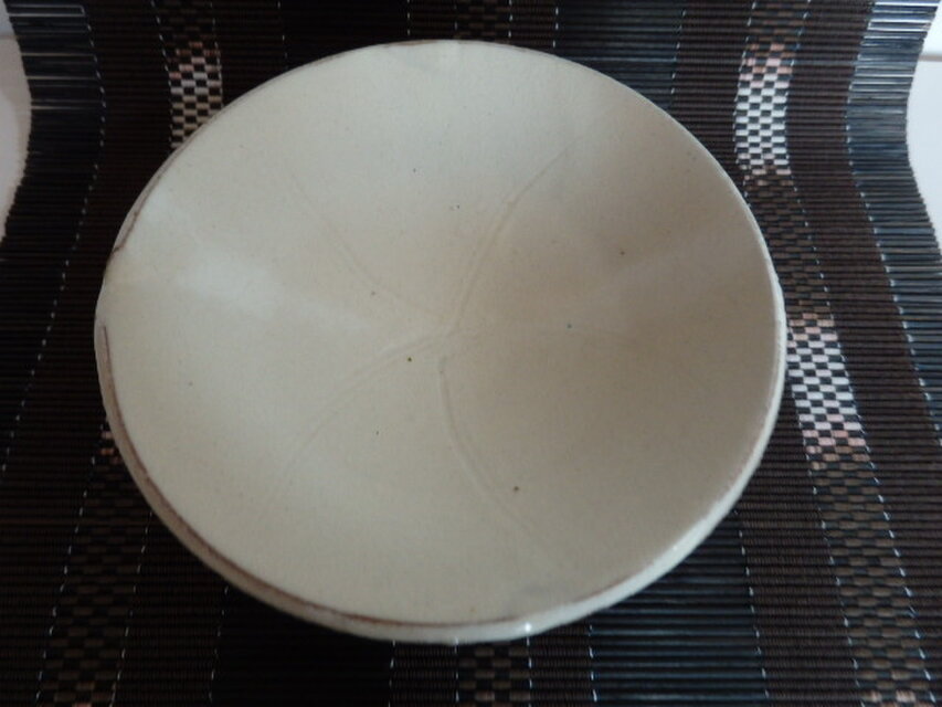 白泥皿に薄く櫛模様のある片口の平鉢です。