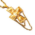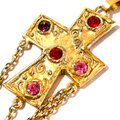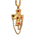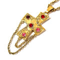 Vintage Gold Tone Cross Pendant Necklace with Rhinestones