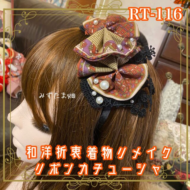 着物リメイク おりぼん ティアラ ヘッドドレス カチューシャ ヘアアクセサリー 和洋折衷 和ロリータ 栗色の残像 RT-116