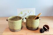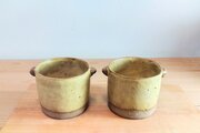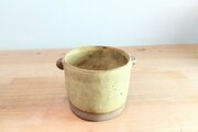 suntrapで人気のみみ付きスープカップ。ニューカラーの登場です。マットなたまご色の釉薬はおなじみなのですが、今回は土の色が違うのです。ミックスしたオリジナルブレンドのベージュ。ボトム部分が焼締めになっていてこの土本来の色味がアクセントになっています。