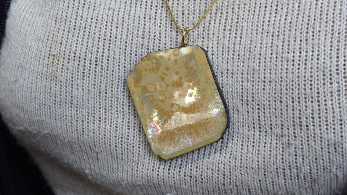 釉薬の研究をいたしております。テクスチャーの変わり種も多くありまして、ご婦人のアクセサリーに応用しようと、考えるに至りました。