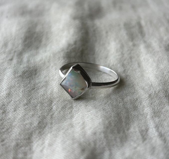 カラフルな遊色が美しいエチオピア産オパール原石のリングです。