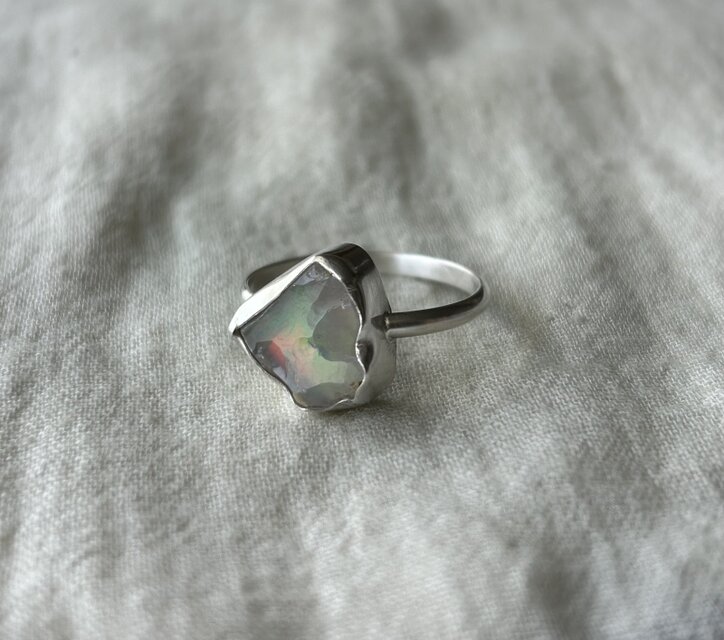 カラフルな遊色が美しいエチオピア産オパール原石のリングです。