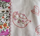 手刺繍した生地は厚手の綿、チェシャ猫のプリント生地には芯地を貼って厚みを合わせています。