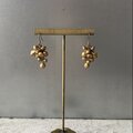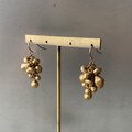 葡萄のようなデザイン魅力的なUSAヴィンテージピアス。揺らめくアンティークゴールドのビーズがお洒落な雰囲気。ウッドビーズならではの軽やかな着け心地も嬉しいポイント。コーディネートに取り入れやすい色合いで様々なスタイルに合わせていただけます。