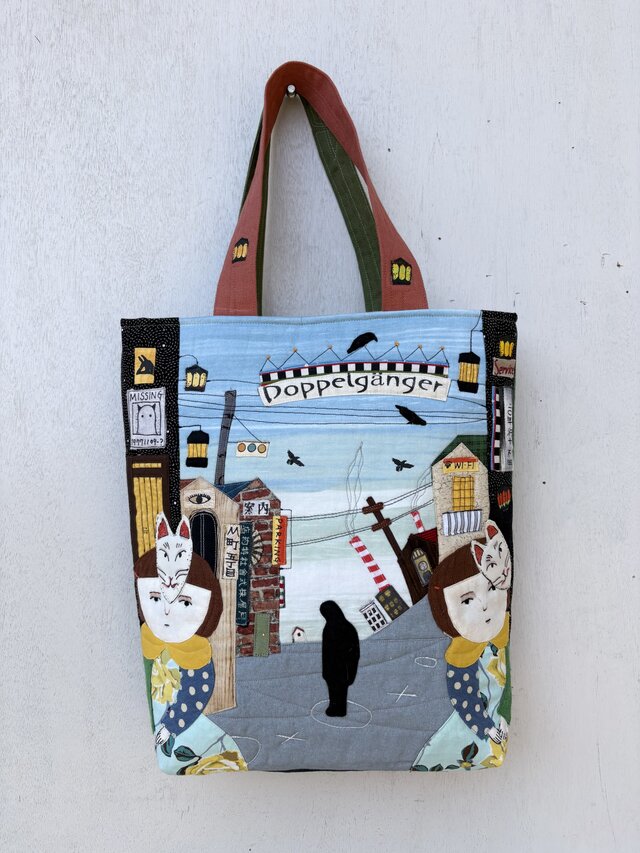 このかばんは量産品のバッグではなく、布と刺繍・アップリケなどで制作した一点物のアート作品です。