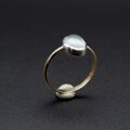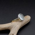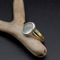 優しい色合いのアクアマリンのカボションを石枠に銀、アームに真鍮を使用したシンプルなリングに仕上げました。