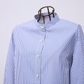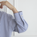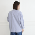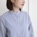 細ストライプとパールボタンで上品な大人シャツ。