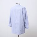 さらさらコットン素材 パールボタン 七分袖 ストライプブラウス ネイビー 0480NV