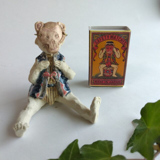 猿のお面をつけた、中国風のちびっこ人形です。